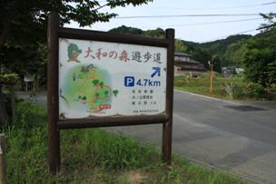 大和の森遊歩道の標識 7時06分 ここから若杉山まで一本道。