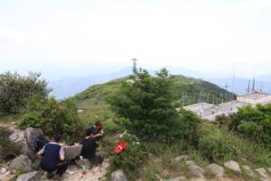 山頂では若者たちが楽しそうにバーベキューをしていた。赤いリュックの登山者に同行してもらい宝満山へ。 13時02分