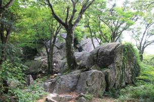 袖すり岩 15時02分 山頂で約30分休憩した後、下山開始。