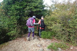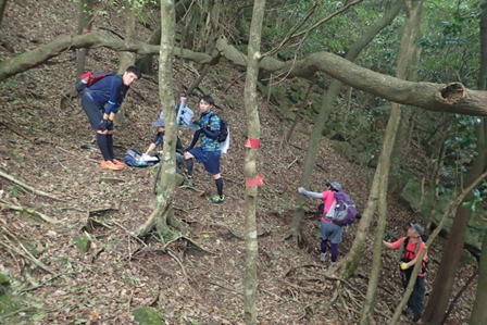 | 我々がモタモタ進んでいると後方から、先程別れを告げたトレラン3人組が追いついてきた。 「お先にどうぞ!」とあっさり道を譲りました。若さが羨ましい。 |