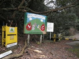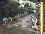 頓野林道 9時13分 九州自然歩道にバイク乗り入れを防止する丸太の柵が・・・。福智山まであと4.1キロ。 楽勝 |