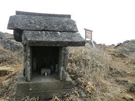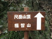 山頂碑右奥の皿倉山方面が北、背面の福智山方面が南となる。 尺岳権現の祠が祀ってある。
