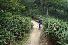 登山道の両サイドは笹が茂る 10時22分 |