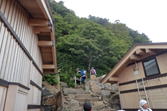 そして、このトイレの屋根越しに見上げると・・・二の鎖を上る登山者が見えた |