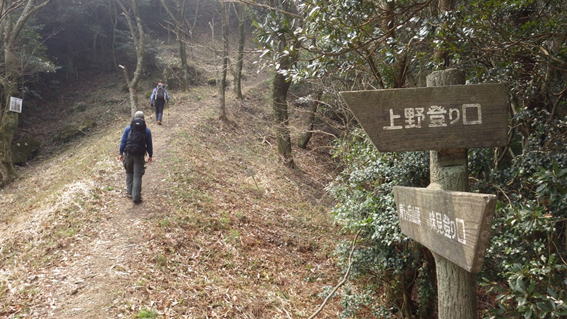 ボックスからの登山道は少し急坂に・・・ 11時50分 ここは「上野登り口」への分岐でもある