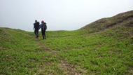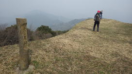 北の丸跡から上ってきた稜線を見下ろす 11時59分 黄砂とPM2.5の影響が酷い