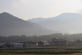 朝もやで霞む徳佐盆地 8時17分 |