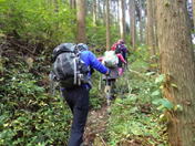 7合目通過 10時28分 高岳山が前方の木々の間からチラチラと見えるようになってきた。「あそこまで上るのかぁ〜」もうひと踏ん張りだ! がんばれ! |