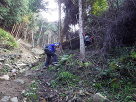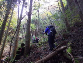 往路必死で上った急登を下る 12時30分 滑り易く要注意!