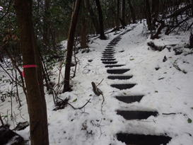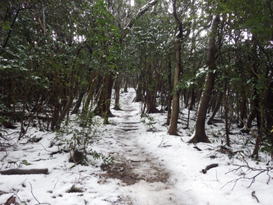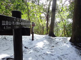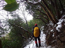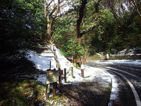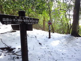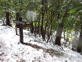 朝起きてみると雨。山行きも、その気になれず悶々としていたが、10時を過ぎる頃から日が射してきた。自宅から皿倉山を見てみると、山肌を雲が駆け上っているではないか。雲間から見える山肌はうっすらと雪化粧している。「これは行くしかない」と、少々出遅れたが急ぎ山へと向かった。「さてどこに登ろう?」 既に満車状態の鷹見神社駐車場を横目に市ノ瀬峠へと向かった。 |