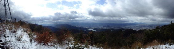 T字路右方向のピークからのパノラマ 13時51分 右側遠くに宗像四塚の稜線