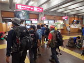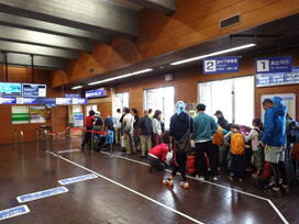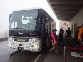 バスターミナル 9時44分 ザックを量ると10キロオーバーでまた300円追加料金を払った。10時のバスで美女平へ。 満員だった! |