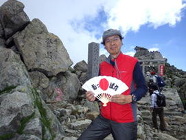7、大汝山(おおなんじやま)山頂 11時55分 3015m さあ次は富士の折立を目指す!室堂からここまで3時間47分経過している。ちょっと時間がかかりすぎているようだ! |