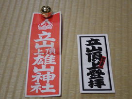 私は今、日本三霊山立山の頂上に立った。一万尺巌頭の神庭に相対するものは神と私だけである。心眼に見ゆるものは全て神の光、心耳に聞ゆるものは全て神の声。神は私以外の何ものにも与えない大いなる使命を私に与えている。私は神の子として私一人の尊い人生を力強く生きよう。今、天地合唱の立山頂上に立って私は固く心に誓った。(金の鈴が付いた赤いお札の裏に書かれている文章) |