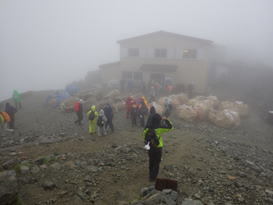 一の越山荘 14時15分 ようやく一の越山荘に到着。ここまでくればちょっと安心。視界は依然として不良である。 室堂へ |