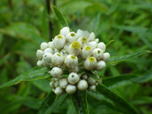 雷鳥沢ヒュッテが見えた! 15時52分 ゴールが見えたら元気百倍。しかしこの長い下りの石畳は、雨で濡れてとても滑りやすい。 調子に乗って歩いていると尻もちをついた。 ヤマハハコ |