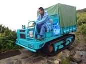 ミドリガ池 7時55分 突然バリバリとエンジン音が響いてきた。見るとキャタピラ装備の物資運搬車だった! 雪でも大丈夫! |