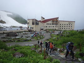 室堂山荘を通過 8時17分 室堂平は霧に包まれていた。 ![]() |