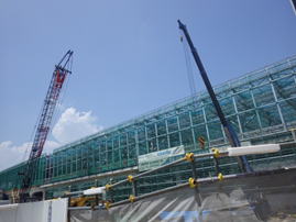 ターミナルの階段を上がると・・・ 7時59分 いつ雨が降ってもおかしくない状況なので、雨対策をしっかり整えて外へ出た。相変わらず霧は濃く、あとは神頼みをするしかなかった。 展望テラスにて |