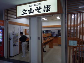 立山そば 12時56分 駅構内の立山そばで空腹を満たし、お土産を買ってサンダーバードに乗車。2泊3日の遠征登山、本当にお疲れ様でした。 山菜そば |