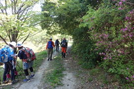 ![]() ミツバツツジの登山道を歩き 12時51分 |