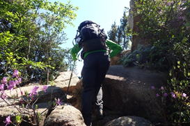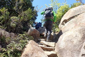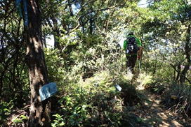 行者山を下って進む 10時39分 不規則な岩場を慎重に下る。 ゆっくりと |