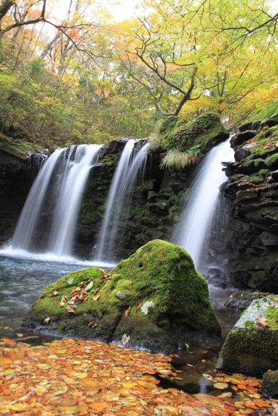 落ち葉が滝つぼに溜まって、秋の情緒満点の暮雨(くらぞめ)の滝である。