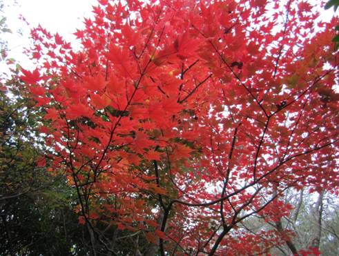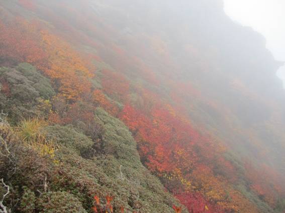| 大船山の紅葉は濃霧のために見ることは出来なかったが、深まりゆく秋の「暮雨の滝」の写真が撮影出来、 また、真っ赤に色付いたモミジも観賞でき、秋の久住を満喫できた。 でも、この濃霧のリベンジはいつか必ず・・・・。 大船山から見下ろした御池(おいけ)の紅葉の写真を撮ってみたい。 |