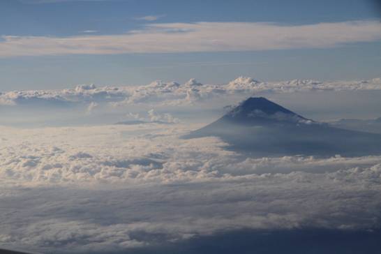 機内から日本一の富士山をみる。これからあの頂上に挑戦すると思ったらワクワクしてくる。