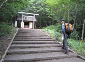 古御嶽(こみたけ)神社 9時06分 「必ず登頂を!」 そして安全祈願をして進む。