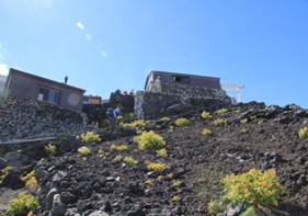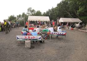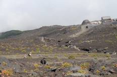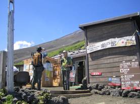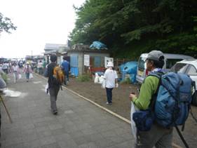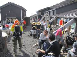 2、須走口五合目登山口 出発 8時58分 我々は今から出発だが、茶店ではすでに下山したばかりの登山者達が休憩していた。