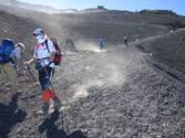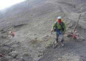 小屋を出発して左を見ると、遠くで「砂走り」をしている光景が目に入った。砂塵が舞っている。