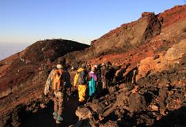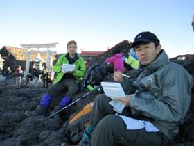 | 1、御殿場駅〜 2、須走口五合目登山口 8時58分〜 3、胸突江戸屋(本8合目)宿泊 〜 4、御来光 5時15分 〜 5、お鉢巡り 〜 6、剣ヶ峰 〜 7、須走りルート 砂走り 下山道 〜 8、砂払い五合目 〜 9、須走口五合目登山口 10時22分 〜 10、御殿場駅 |