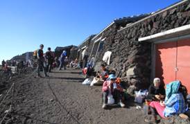本七合目 見晴館 13時42分 標高3200m トイレから戻ったT師匠なぜか元気がない。 トイレの床が揺れるって、それ大丈夫なの?