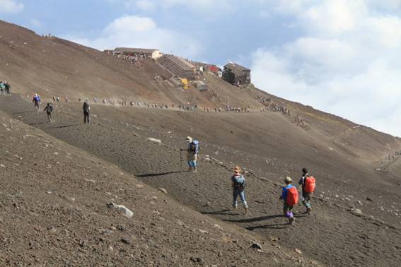 空前の富士登山ブームと言われる今年は、8月まで既に28万人の登山者を数えた。 |