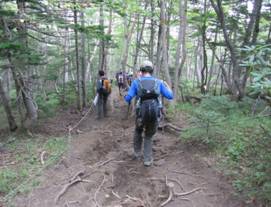 「剣ヶ峰」を目指して「馬の背」を登る。 |