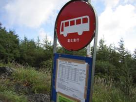 須走口五合目バス停 8時11分 登山口に近づくにつれ、富士山も徐々に大きく見えてきた。空は青く、絶好の登山日和。