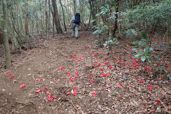 ヤブツバキの落花を踏まないように歩く 9時04分 寡黙になって一歩一歩 |