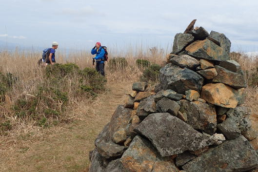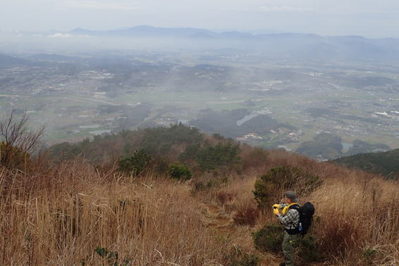 | 福智山山頂から八丁の辻へ下る 10時40分 途中、立ち止まって撮影をしていると・・・ 我々の横を下る女性から、「ひょっとして福智山の本を書いた人ですか?」と尋ねられた。 突然のことでビックリ。「はい、そうです」「こちらがH師匠です」と答えるのが精一杯だった。 「福智山系登山ガイド」を読んで頂きありがとうございます。お声掛け嬉しかったです。 |