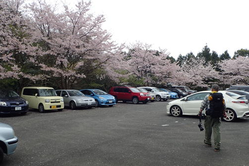 11、公共駐車場 12時39分 桜は満開、駐車場は満車。