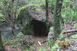 炭焼き小屋跡 9時22分 福智山系に点在する炭焼き小屋。 昔は山のあちこちから煙が立ち昇っていたのだろう。 そんな燻ぶった森の風景を想像してしまう。 石組みが残る |