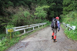 頂吉(かぐめよし) 7時10分 頂吉(かぐめよし)林道の入口にある川沿いの路肩に駐車した。到着すると霧雨が降っていた。 気温7度でこの時期にしてはとても寒い朝である。 ここでH師匠と待ち合わせ。 今回は福智山山頂を踏んで、赤牟田の辻、焼立山、そして金満尾根を経てここまで戻ってくる。 いつもよりロングコースになるので、不安もよぎるが、気持ちよくスタートした。 |
