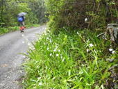 上頂吉3号橋 8時11分 とうとう大粒の雨が降ってきた。ザックにカバーをかけて、風はないので傘を差すことにした。 シャガ真っ盛り |