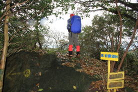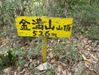 11、金満山山頂 14時06分 526m 分岐から約30分で金満山山頂に到着。 四等三角点だった。ここまで道は細いが、黄色の標識が沢山つけてあるので迷うことはないだろう。 山頂とは思えない場所 |