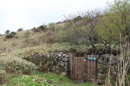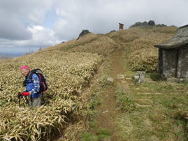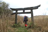 南面小屋跡 10時42分 桜の大木のすぐ横に山小屋跡がある。福智神社上宮の鳥居をくぐって先に進む。 かなり古い鳥居 |