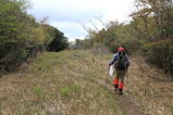 尾根は石灰岩質に変化した 14時03分 途中から石灰岩が多くなり、様相が変わってくる。地下には鍾乳洞が存在するのでは?そんな想像をさせるくらいゴツゴツと白い岩が・・・。 |