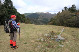 5、頂吉(かぐめよし)分れ 9時43分 福智山系の尾根道に辿り着いた。 出発して2時間10分。これから一旦福智山頂を踏んでまたここまで戻り、反対側の赤牟田の辻方面に向かう予定だ。まだまだゴールは遠い。 一息つく |