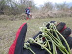 13、満干越(みちひごし) 14時45分 満干の語源は滝上部の岩間から不定期に吹き上がる間欠泉による川の水量の増減からきているらしい。 この分岐から頂吉方面へ下る。 あとひと踏ん張り |