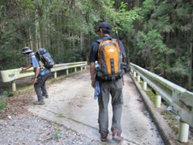 1、頂吉(かぐめよし) 6時52分 鱒淵ダムにて集合。ダムに車を1台デポして頂吉まで4人で移動。「頂吉少年自然の家」付近の川沿いに車を停めた。今日は頂吉〜月の平〜福智山〜鱒淵ダムのコースを歩く。早朝なのでまだ誰も来てない。暑い夏が続いているが、今日は幾分涼しい気がする。天気予報は午前中晴れだが、午後は雨になる予報が出ている。なるべく早目に下山をしたい。 |