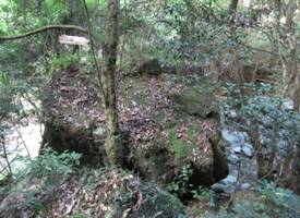 炭焼き小屋跡 8時33分 よくこんなところで炭を焼いていたと思う。 少し広い場所に石垣が積んであった。